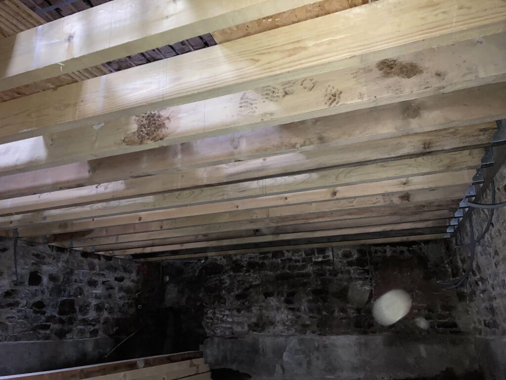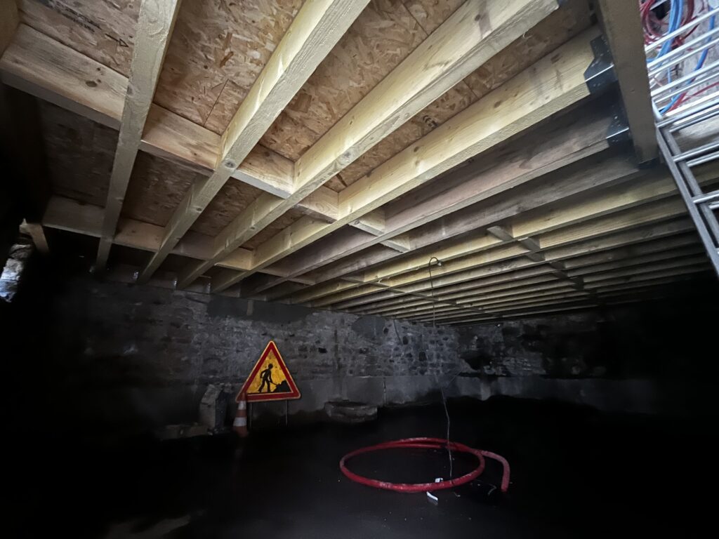 Creation d’une mezzanine 16 décembre 2024 Réalisation d’un solivage porteur pour la création d’une mezzanine. Avec le démontage des anciennes poutres.