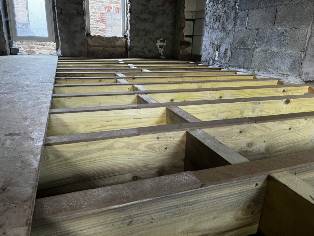 Création d’un plancherPar Clément Onillon / 18 décembre 2024 Réalisation d’un solivage et d’un plancher pour un étage complet avec la pose de bandes résilientes et création d’une trémie