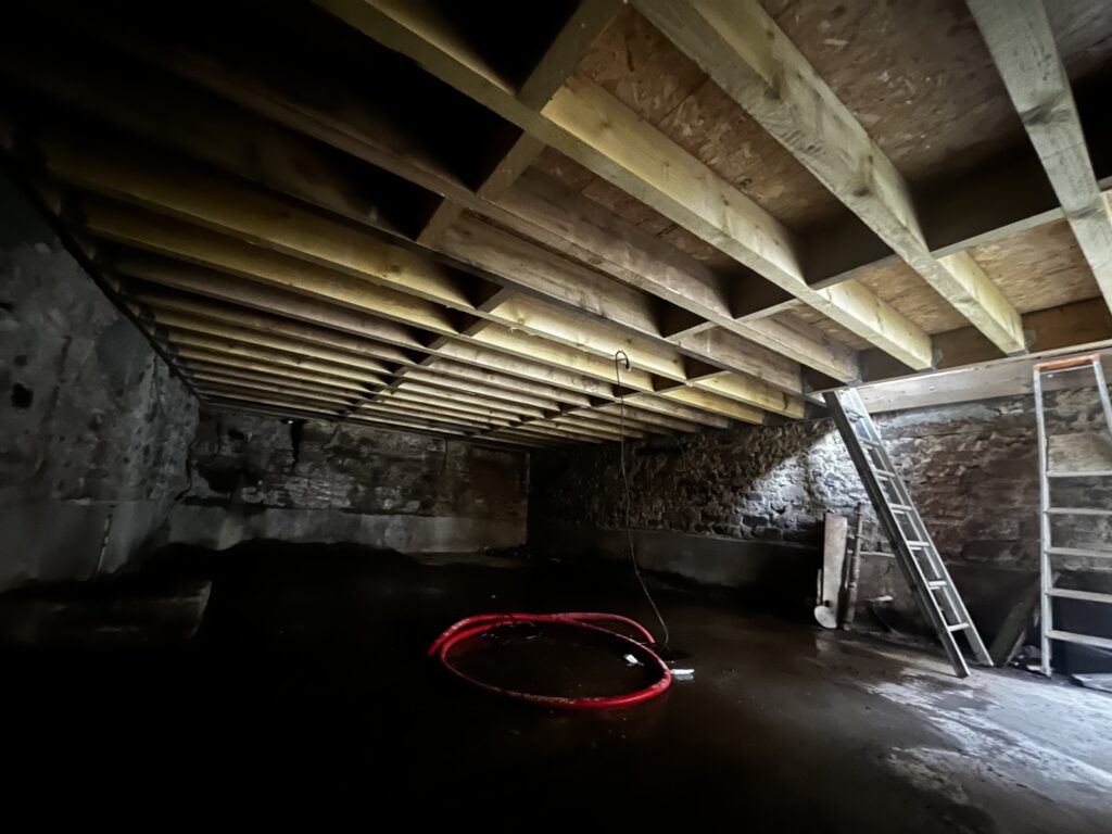 Mise hors d’eau 16 décembre 2024 Reprise de charpente et mise hors d’eau provisoire d’un bâtiment avant l’intervention de la maçonnerie.