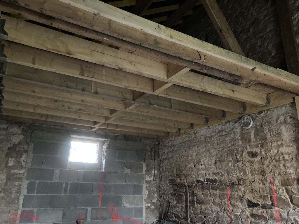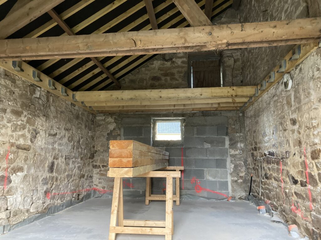 Creation d’une mezzaninePar Clément Onillon / 16 décembre 2024 Réalisation d’un solivage porteur pour la création d’une mezzanine. Avec le démontage des anciennes poutres.