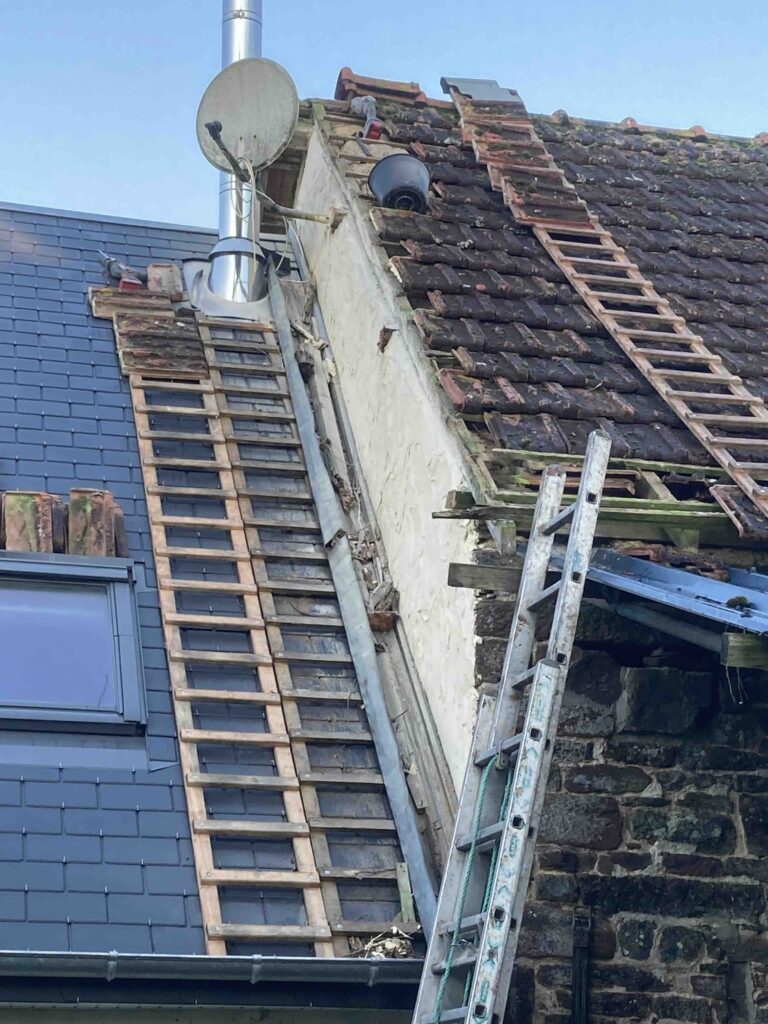 Reprise et refection d’une rivePar Clément Onillon / 30 mars 2025 Reprise et réfection d’une rive en tuile sur un bâtiment avec la pose de bandes de rive en Zinc naturel